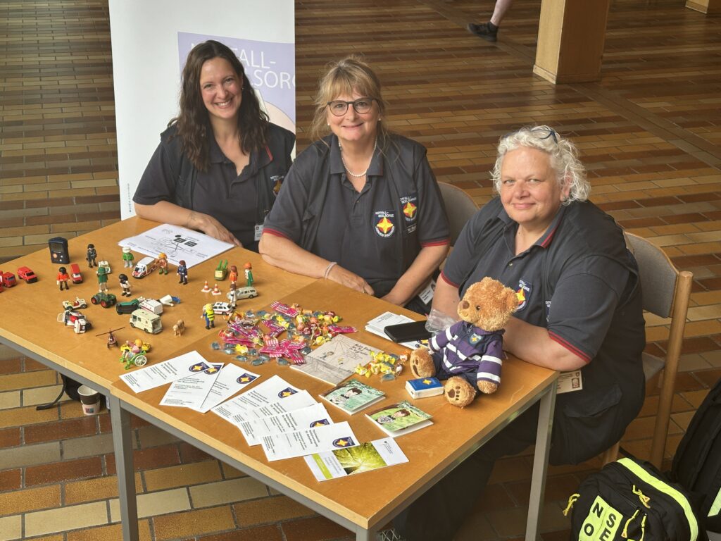 Eine dieser Stationen konnten wir als PSNV gestalten. Wir erklärten, was PSNV bedeutet, wie wir Betroffene in Krisensituationen unterstützen und welche Rolle wir gerade in Katastrophenfällen spielen. Wir erlebten die Jugendlichen als sehr interessiert und offen gegenüber unserer Organisation. Es war für uns ein spannender und bereichernder Tag.